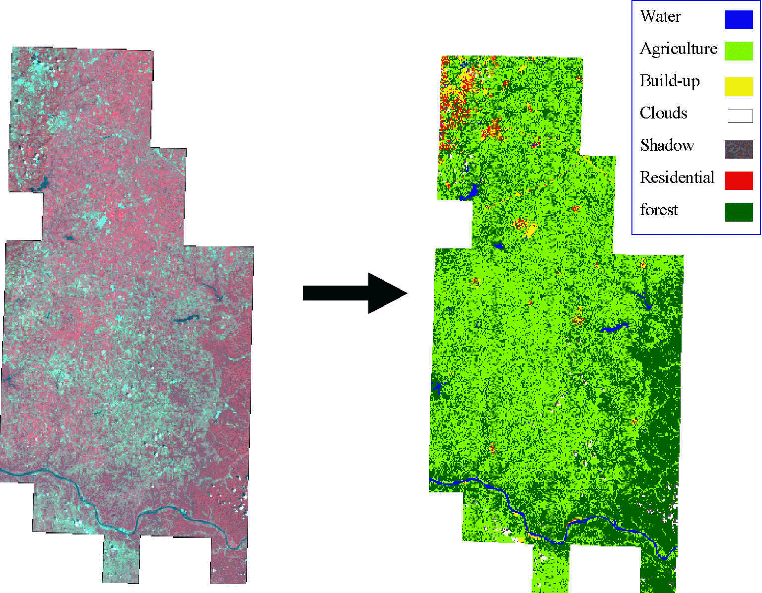 Within these classification percentages, Forest, Residential, Build-up, and Agriculture need to be improved. Ground truthing and having validation points for the future classification should help these problem classes out. The main concern was the Residential class. As stated before, Residential areas tend to have a lot of mixed pixel values. This will cause a problem within the overall classification of the image. Moreover, I feel that subsetting out the Cloud and Shadows and the Build-up areas, greatly increases the classification. Lastly, since the classification did not achieve the 85% accuracy, changes and ground truthing need to be done in order of this to be a contributing factor within the GIS database. The process used in this method has helped my skills in the numerous techniques used for classifying images based on land use features. |